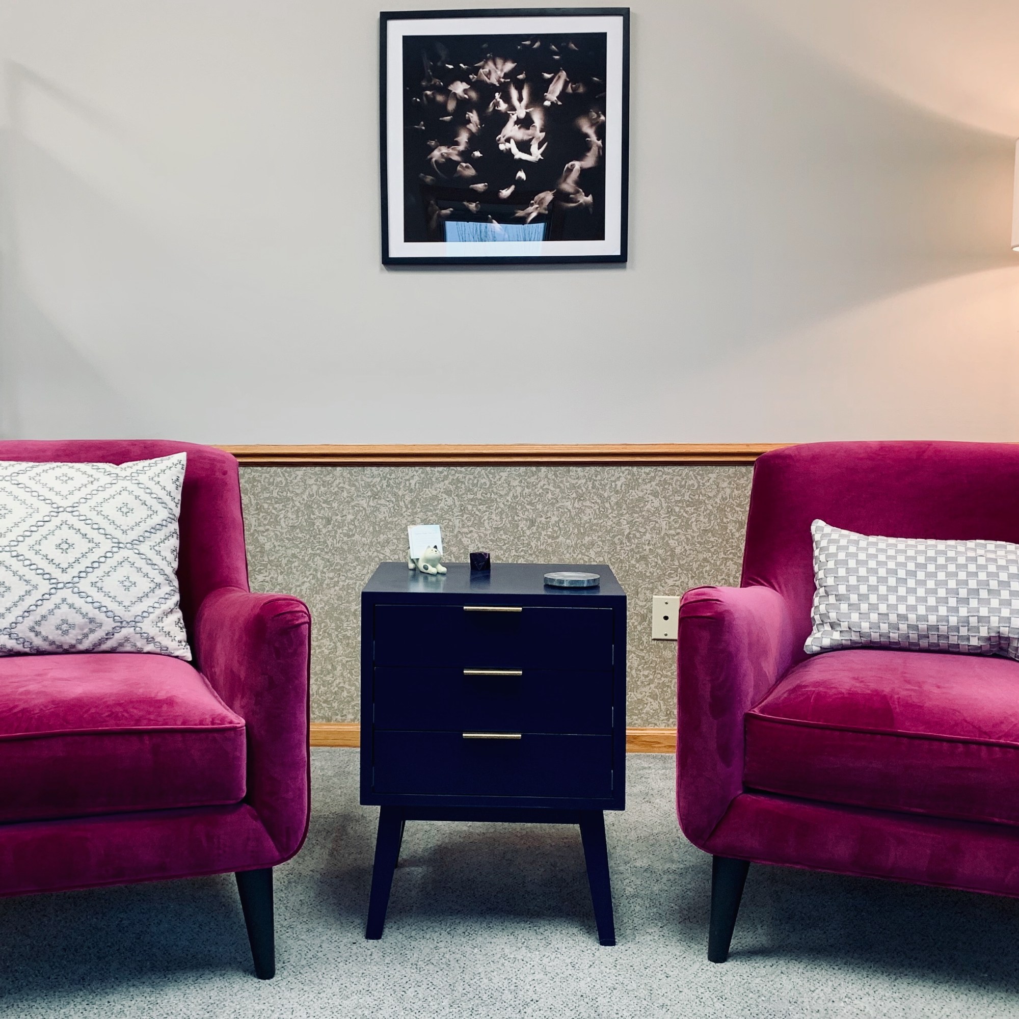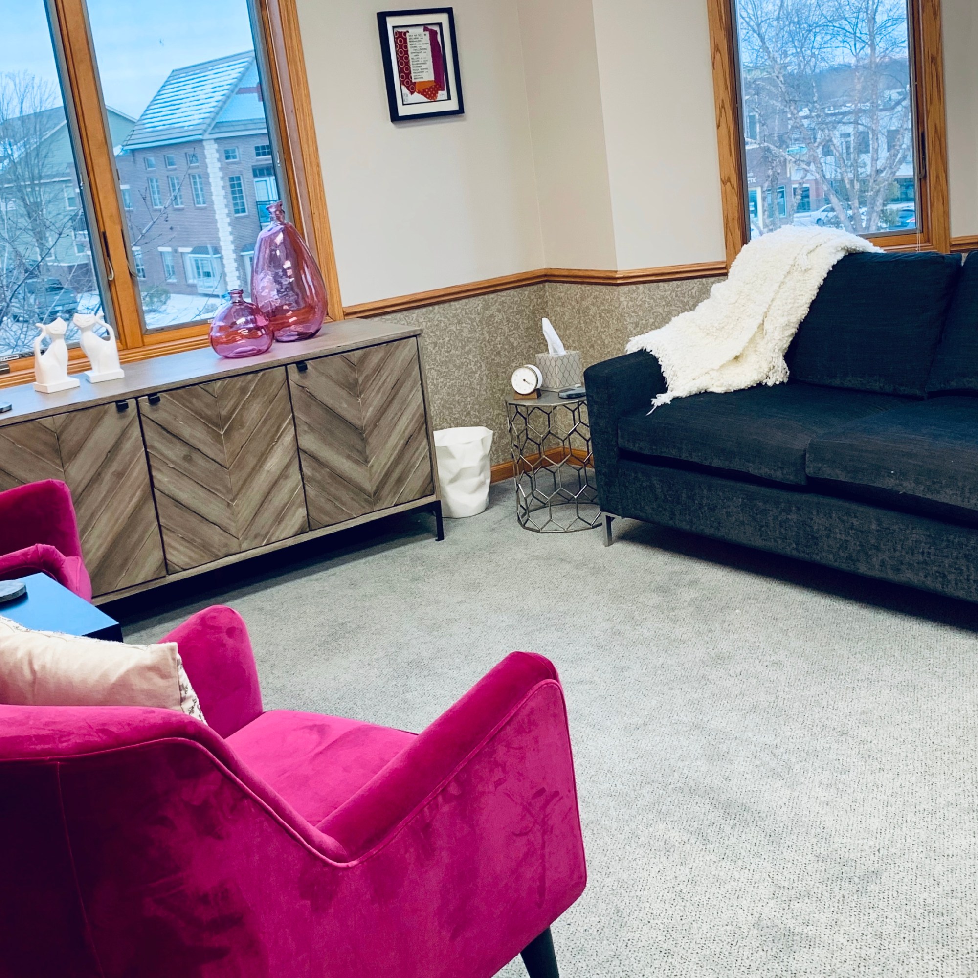 A few years ago, Dr. Bagby-Stone was reading an article online and stumbled across the concept of hygge. Hygge is a mood of coziness, comfort, friendliness, safety and contentment. It derives from a Danish word meaning “to give courage, comfort, joy”. This word perfectly sums up how she wants you to feel in her office. Her light-filled space with comfy furniture has a lovely view of the village square in Cherry Hill (including the Magic Tree). Here patients have the opportunity to share their story and feel heard, ask questions, discuss medical evaluations, collaborate in their care and envision their future.